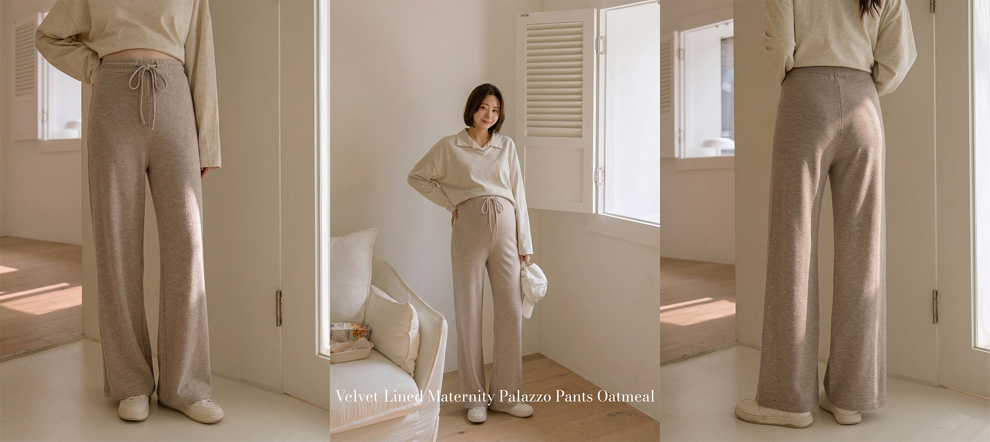 Spring-Fall Relaxed Maternity Wide-Leg Pants Grey Beige