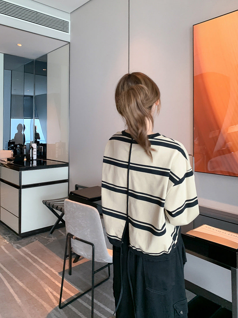 Elevate your maternity style with the ADER EOFFOR Khaki Striped Long Sleeve T-Shirt. This loose-fit short top features a chic striped design and a comfortable fit, perfect for the autumn season. Its versatile look and cozy feel make it an essential addition to your maternity wardrobe.
